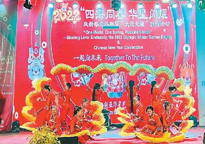尼日利亚今年的“四海同春 华星闪耀”活动主题是“庆新春 迎冬奥 大爱无疆”。舞狮、扇子舞、腰鼓等节目烘托出节日气氛,中尼演员联合表演的歌曲和伴舞《一起向未来》表现了对北京冬奥会的期待与祝福。“我们对华星艺术团的定位是中尼两国文化的结晶,所以我们在节目的编排上偏重两国文化的交流。我们的节目不仅有中国特色的歌曲舞蹈,也有尼日利亚当地精彩的民族舞蹈。今年,我们还尝试不同风格,编排了以柔美为特点的舞蹈《天边》,让观众能从欢快的节目中体会到不一样的中国美。”倪孟晓说,“通过春节活动,我们希望当地人能了解中国节日,感受中华文化的魅力,同时,我们也通过发放助学金等活动回馈当地社会,让他们感受到我们侨团的诚意。”