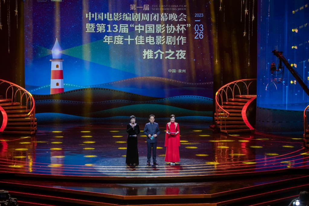 由中国电影家协会、福建省电影局等主办的第一届中国电影编剧周近日在福建泉州闭幕。电影《悬崖之上》《爱情神话》《人生大事》等十部影片获“年度十佳电影剧作”推介。