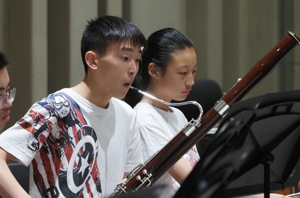 7月11日,“MISA学生节日乐团”管乐声部的学生在进行首次联排。新华社记者 任珑 摄