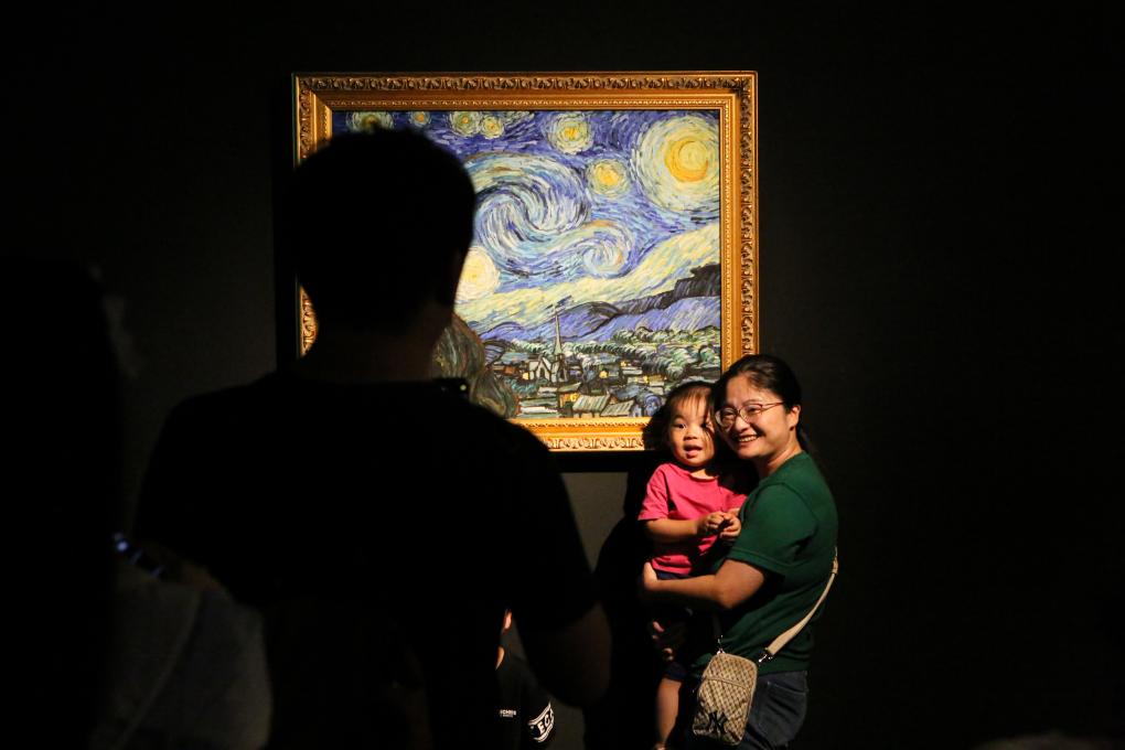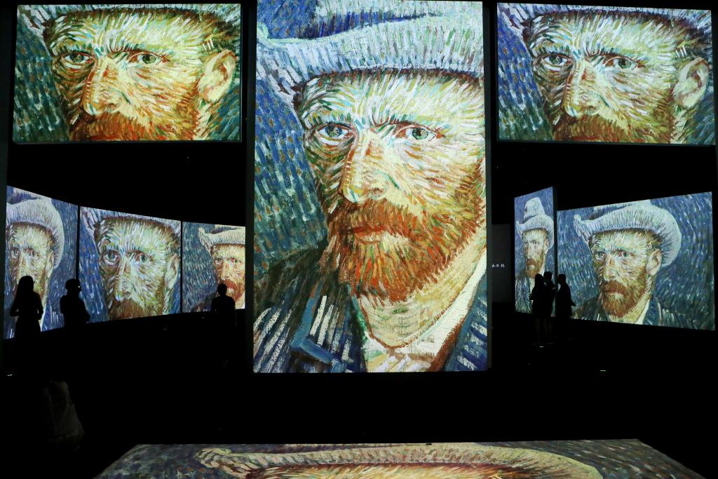 7月16日晚,参观者在参观“梵高再现”光影展。 新华社记者 辛梦晨 摄