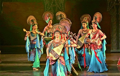大型洞窟式陶醉体验剧《乐动敦煌》在甘肃敦煌首演。新华社发