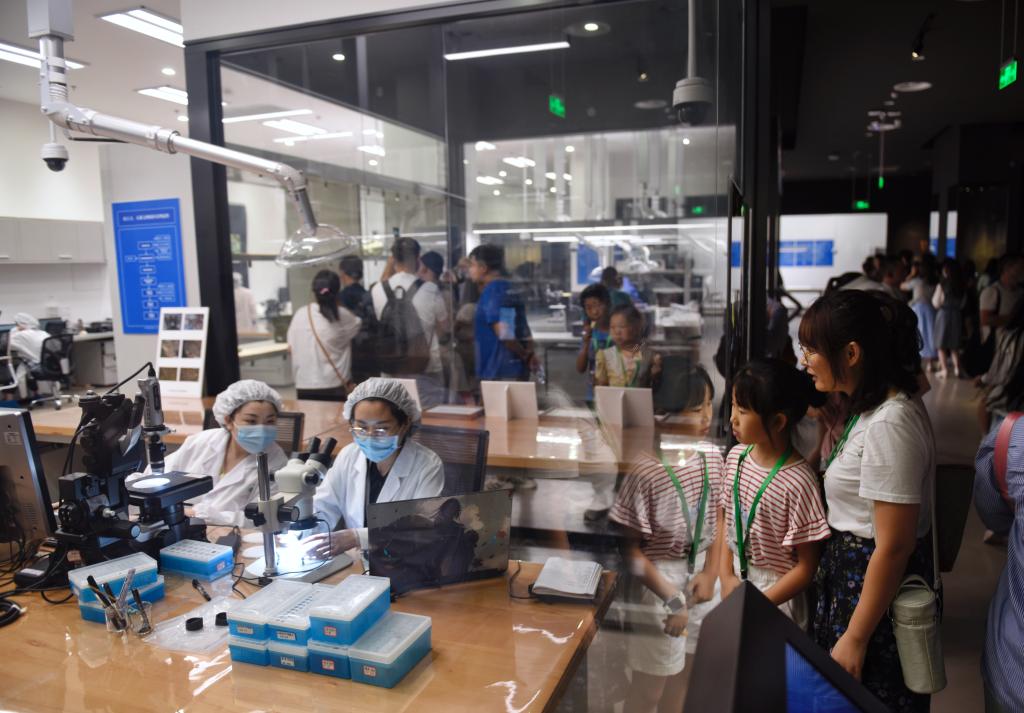 日前,众多观众在参观三星堆文物保护与修复馆。新华社记者 刘坤 摄