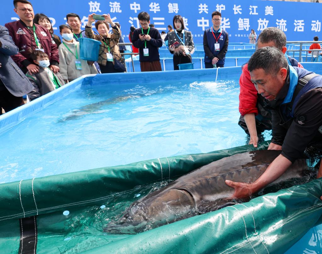今年3月,10万尾中华鲟在湖北省宜昌市胭脂园长江珍稀鱼类放流点放归长江。这是三峡集团联合国内相关中华鲟保护机构,连续第68次开展流域化中华鲟放流。
