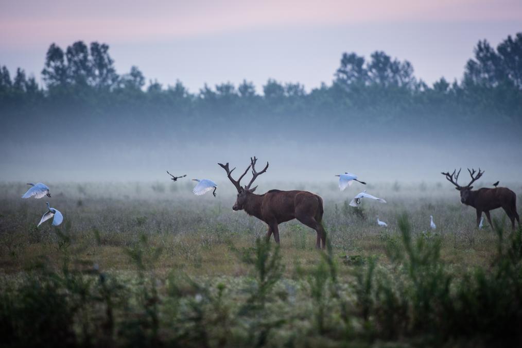 2022年,上海首个麋鹿野放栖息地在崇明区新村乡建成。麋鹿栖息区除了有麋鹿喜爱的泥潭环境、生态湿地景观、芦苇滩等,还营造了具有自然野趣的沼泽湿地景观,并起到水质净化的作用。