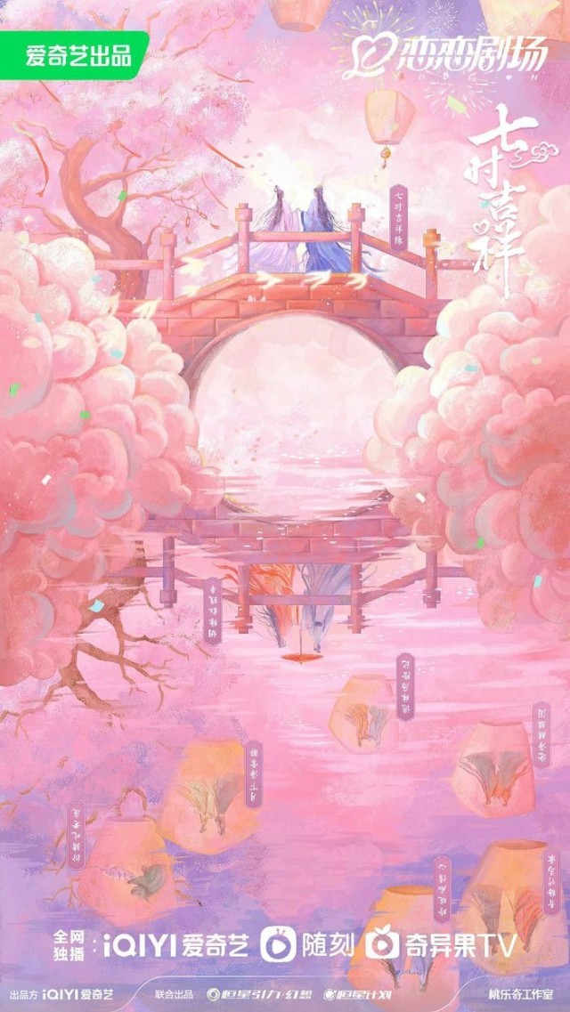 无限流甜虐轻喜剧《七时吉祥》改编自九鹭非香原著小说《一时冲动,七世不祥》,讲述了天界姻缘阁红线小仙祥云(杨超越 饰)与上古战神仙君初空(丁禹兮 饰)二人阴差阳错绑定为情劫仙侣,需共同下界开启一次次情缘副本,直至破除六界危局,从而牵绊出一系列爆笑欢乐又跌宕缠绵的七次情缘。