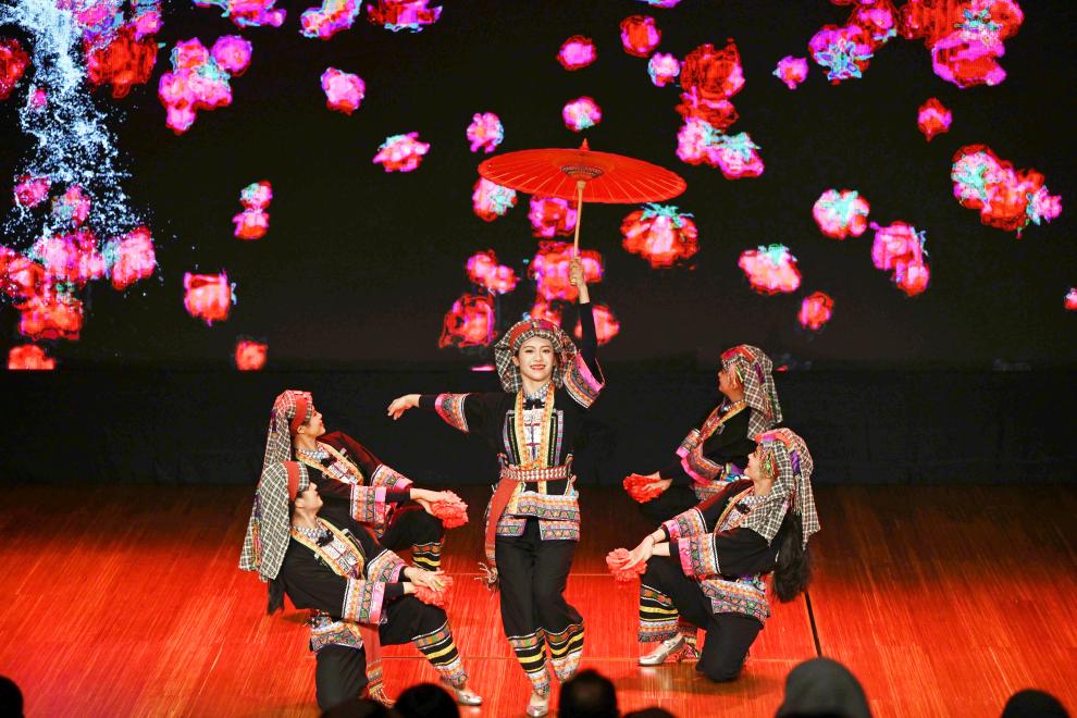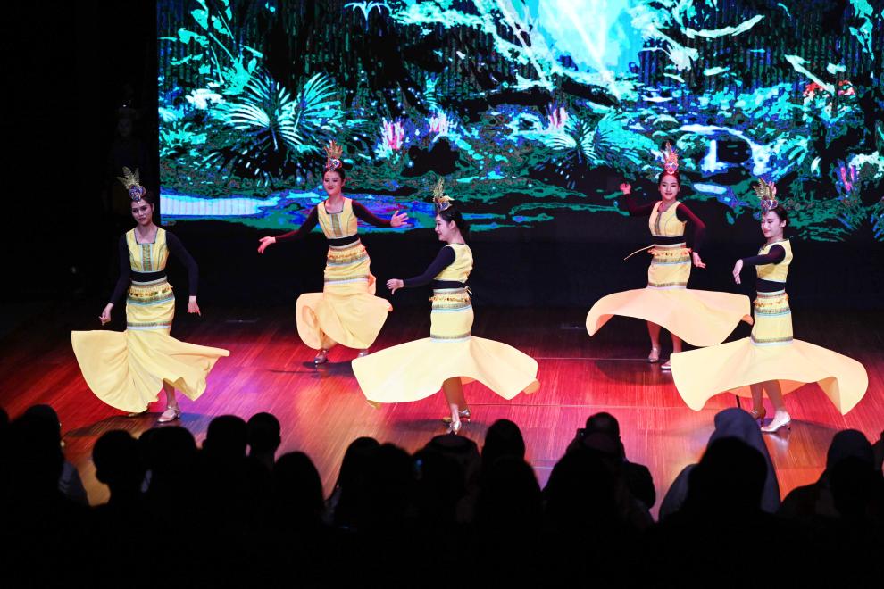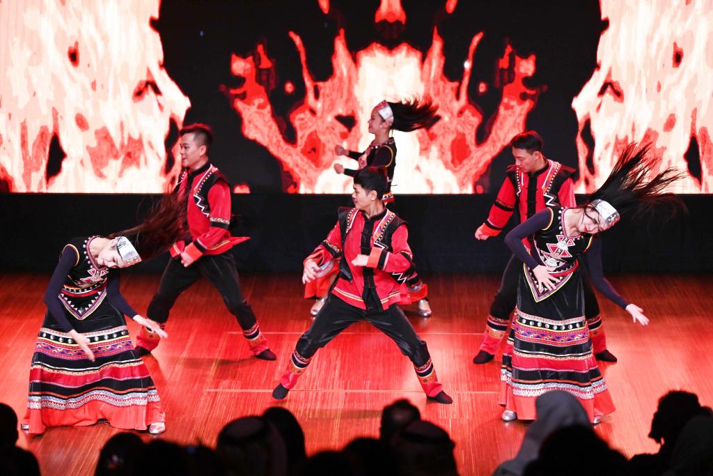 9月19日,在科威特首都省,来自中国云南省临沧歌舞团的演员表演舞蹈。新华社发(阿萨德 摄)