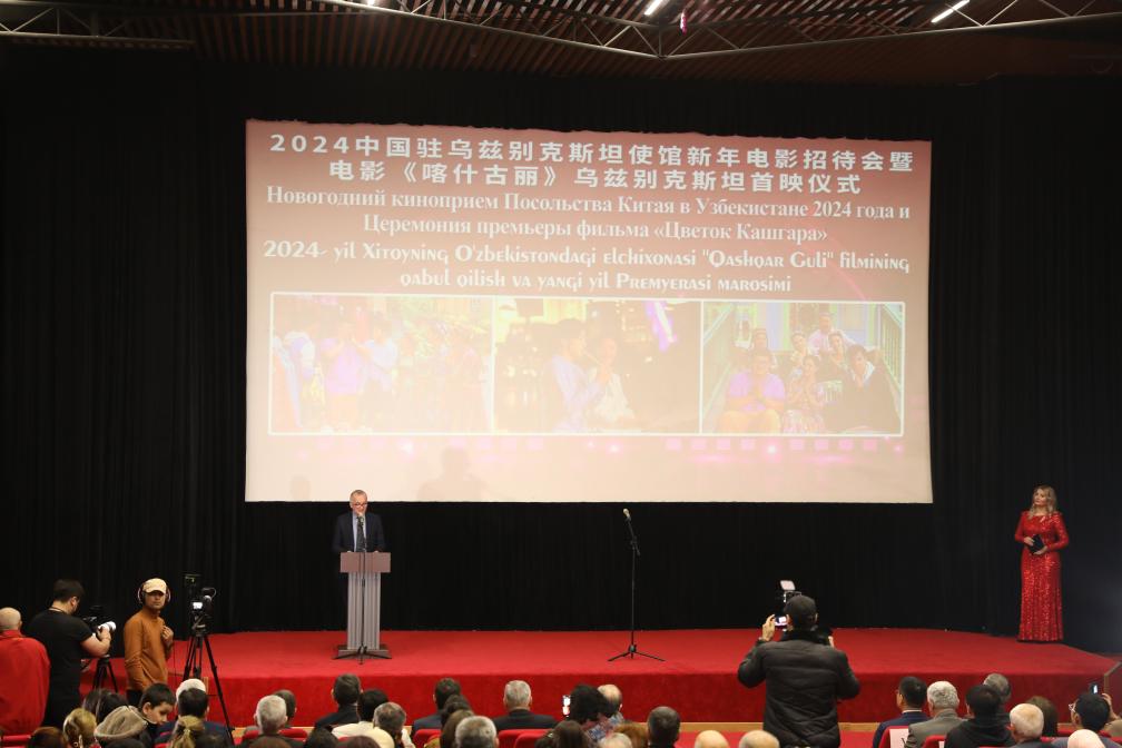这是1月5日在乌兹别克斯坦首都塔什干拍摄的电影《喀什古丽》首映式。