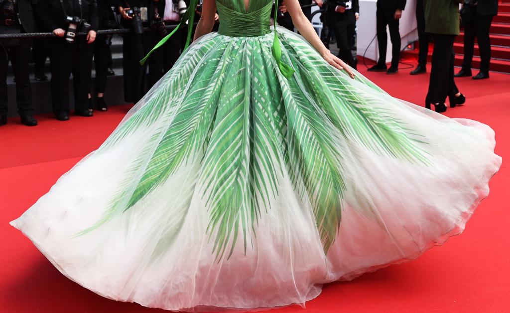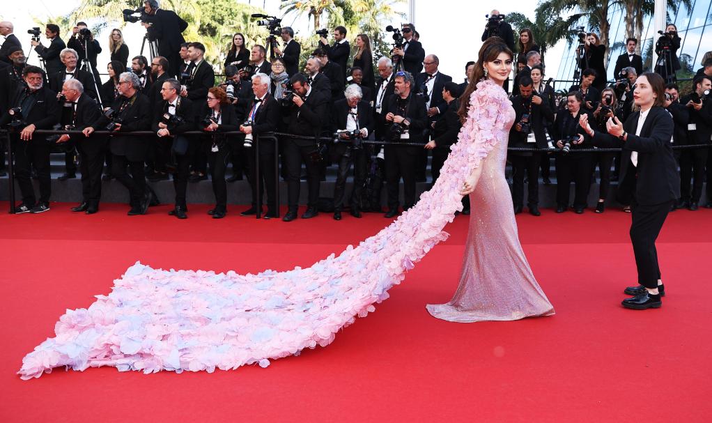 5月23日,在法国南部小城戛纳举行的第77届戛纳国际电影节上,印度宝莱坞演员乌尔娃希·拉特拉踏上主竞赛单元影片《狂爱》的首映式红毯。新华社记者 高静 摄