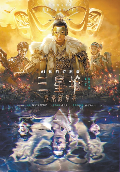 2021年国内首次对外公布了新一轮考古发掘成果,黄金面具、青铜神树等三星堆文物的发掘震撼世界,博纳当时就开始储备这一题材,并进行了相关影视作品的内容构思。2023年,博纳开始进行AIGC的创作,在众多题材中决定采用三星堆元素来制作首部AI科幻短剧,但从今年2月进行正式制作开始,历经了5个月的周期,才做出了总长度53分钟、总计13集的内容。