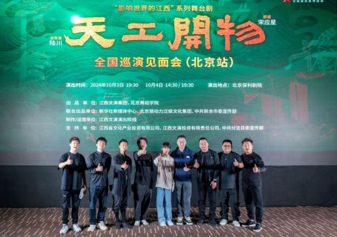 10月3日、4日,陆川导演的首部舞剧《天工开物》作为“大戏看北京”2024展演季剧目,将在北京保利剧院连演三场,向新中国成立75周年献礼。9月29日,舞剧《天工开物》全国巡演发布会在北京万达影城举办,陆川率剧组主创主演团队与观众和媒体见面。同场还举行了陆川导演电影新作《749局》全国首映礼。两部作品,舞剧融合科技与舞蹈,电影集科幻与冒险于一体,共同展现了陆川导演对“生而不同,敢为不同”的执着追求。