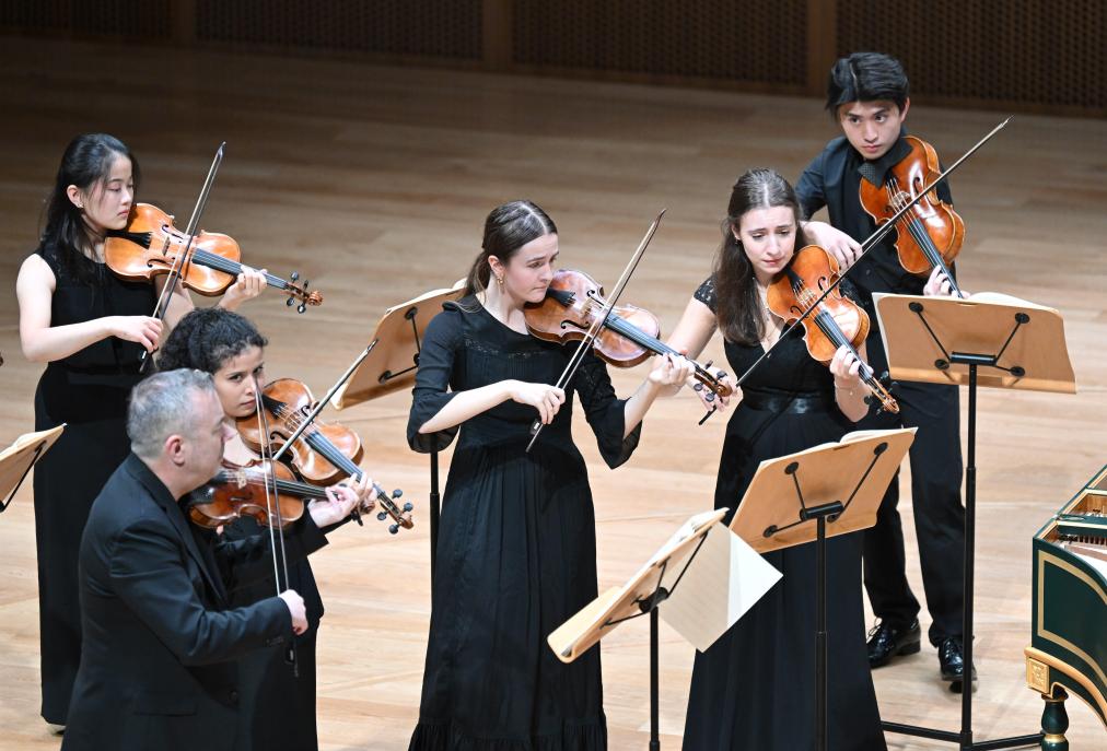 10月13日,美国茱莉亚415古乐团的14名师生在天津茱莉亚学院举行音乐会“一场音乐的盛宴:巴洛克协奏曲与舞曲”,这是美国茱莉亚415古乐团首次来华举行音乐演出。乐团成员还将在天津茱莉亚学院开展驻院讲学,举办工作坊、研讨会、联合排练等学术交流活动。未来一周,该乐团师生还将在北京、南京、苏州、上海4个城市开启巡演演出。