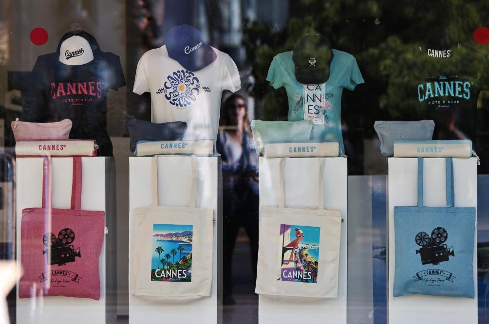 这是5月12日在法国南部海滨城市戛纳拍摄的戛纳国际电影节主题文创产品。新华社记者 高静 摄