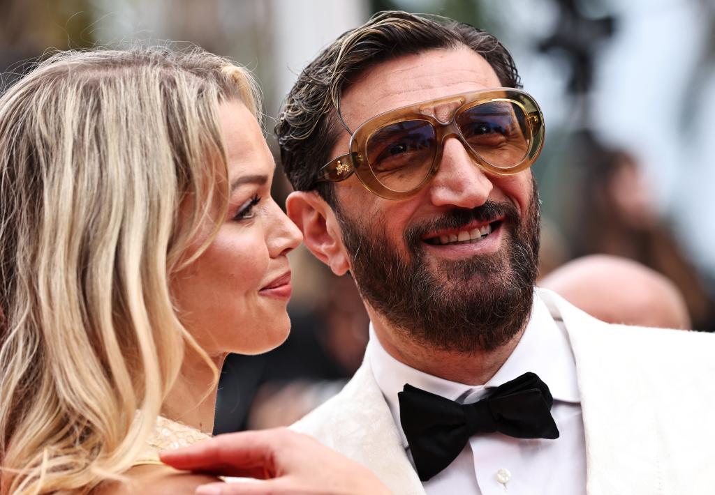 5月19日,在法国南部小城戛纳举行的第78届戛纳国际电影节上,瑞典演员法瑞斯·法瑞斯(右)在主竞赛单元影片《共和之鹰》首映礼后离开。新华社记者 高静 摄
